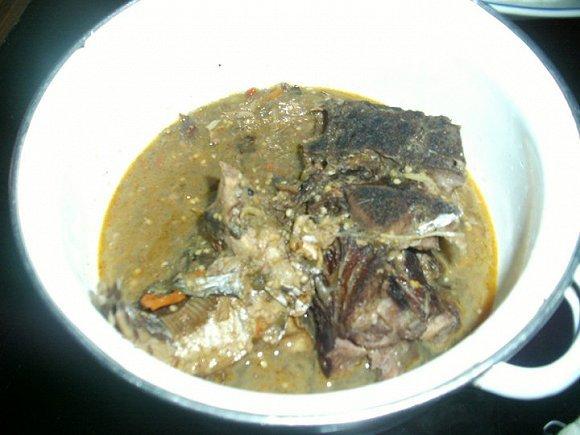 中餐講究醬料入味食材,西餐則是醬料與食材分離。所以西餐里衍生出了中餐里所沒有的醬汁體系。到了科特迪瓦,前面說過食材的做法都比較單一,所以醬汁就成為科特迪瓦人飲食習(xí)慣中非常重要的一環(huán)。尤其是當(dāng)?shù)厝送矚g把食材魚呀肉呀浸泡在非常濃厚的醬汁里吃,與中國人法國人的習(xí)慣都想去甚遠(yuǎn),大家可以通過以下一些圖片隨意感受一下。