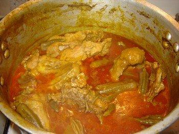 秋葵醬(Sauce Gombo),這可能是當(dāng)?shù)刈钍⑿械尼u汁了。下圖是這是在我一個(gè)同事家拍的,他把肉和魚都混到一起了,實(shí)在是有點(diǎn)不堪。