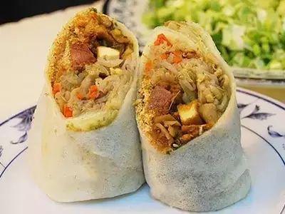 “潤(rùn)餅菜”是以面粉為原料擦制烘成薄皮,俗稱“潤(rùn)餅”或“擦餅”,再卷胡蘿卜絲、肉絲、蚵煎、芫荽等混鍋菜肴,即可食用,甜潤(rùn)可口。