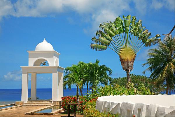 塞班島臨近赤道,一年四季如夏,風(fēng)景秀美。背倚熱帶植被覆蓋的山脈,透過(guò)道路兩旁的郁郁蔥蔥的椰樹(shù)展示在你面前的是迷人的藍(lán)綠色菲律賓海,故有“身在塞班猶如置身天堂”之說(shuō)。